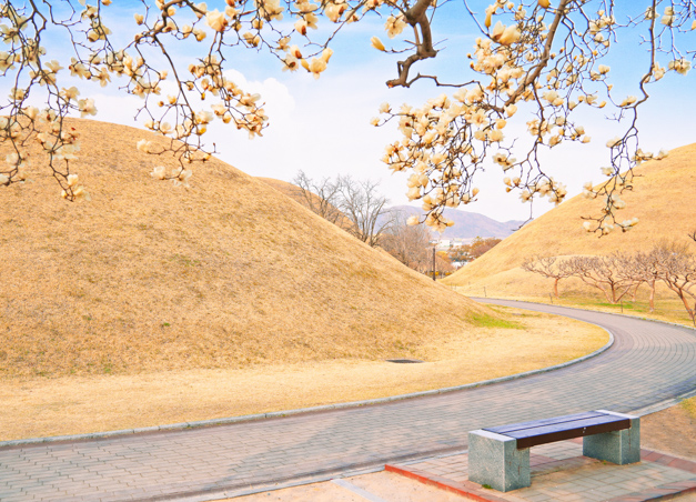 대릉원에 아름다운 목련 포토존이 있는데, 고분과 고분사이에 목련나무가 서 있는데 그 곳이 핫한 스폿입니다. 목련 포토존은 동문에서 가까워, 후문으로 들어간 뒤 황남대총 뒤편 산책로로 가는 것도 빠른 방법이니 참고하시면 좋을 것 같습니다. 일단 규모가 큼지막한 데다가 경주시 시가지에 있어 접근하기 좋고, 천마총처럼 신라 왕릉 내부를 관람할 수 있는 고분도 있어 경주를 찾는 관광객들은 거의 필수로 찾는 곳이기도 합니다.