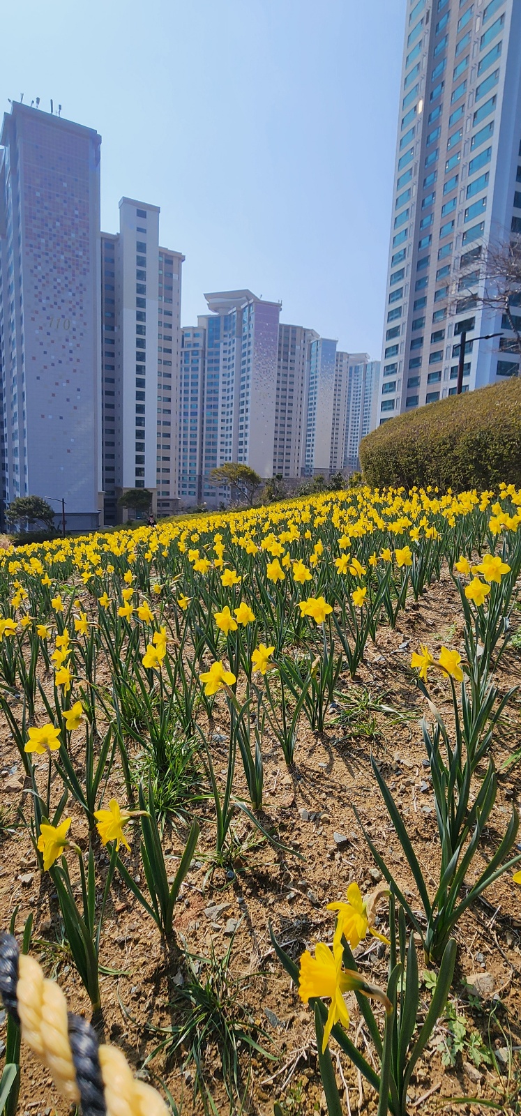 해맞이 공원에는 수선화 꽃이 흐드러지게 많이 피어 있는데요 노란색 물결이 봄이 왔음을 알려주는 것 같네요